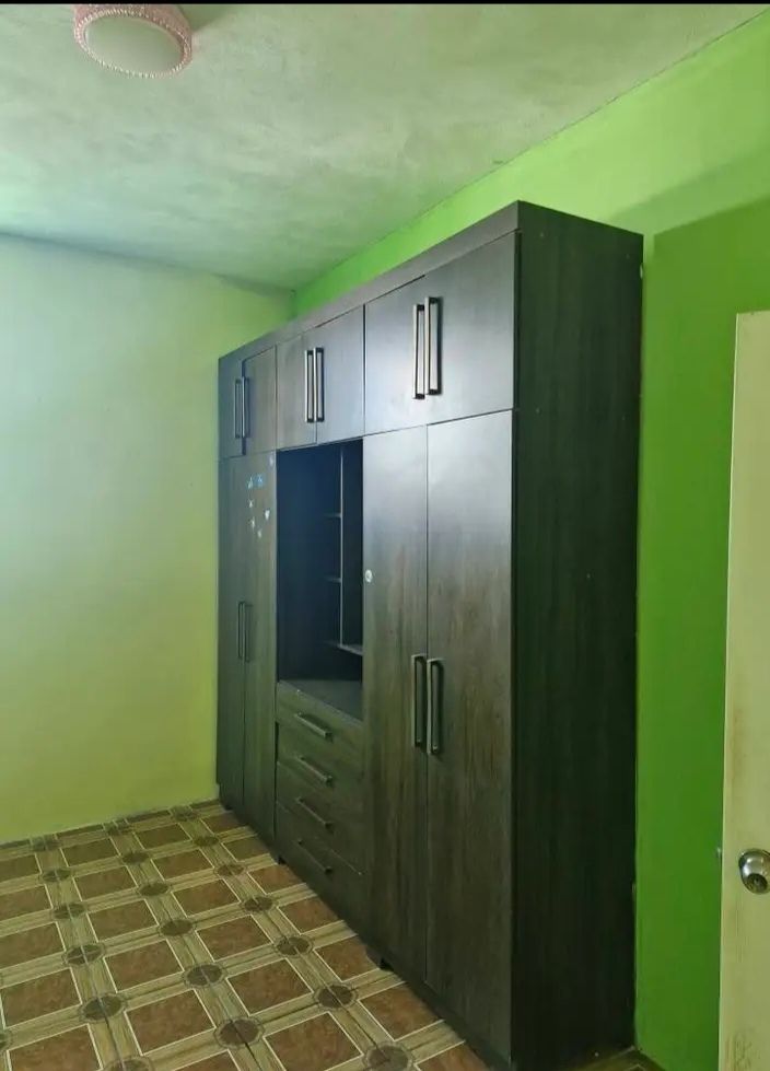 6 habitaciones 2 con closet, cocina con gabinetes , sala con modular para television, comedor.