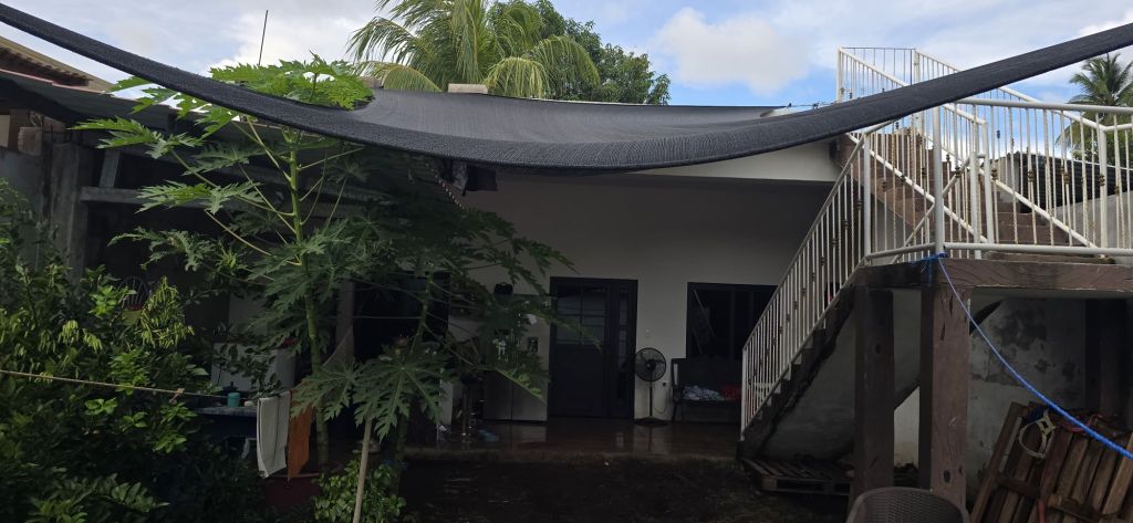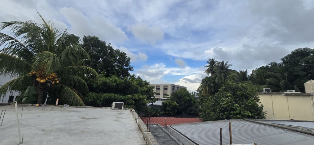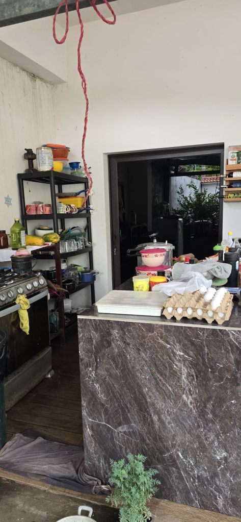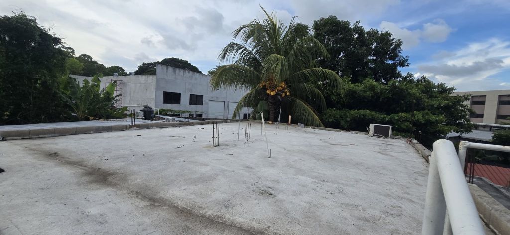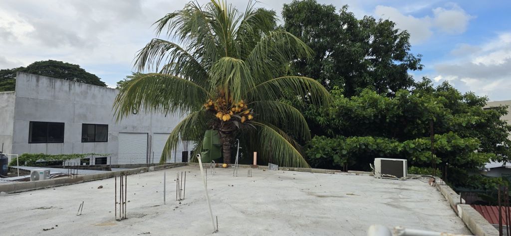 De terraza. Su sala, cocina y comedor en un solo ambiente abierto.